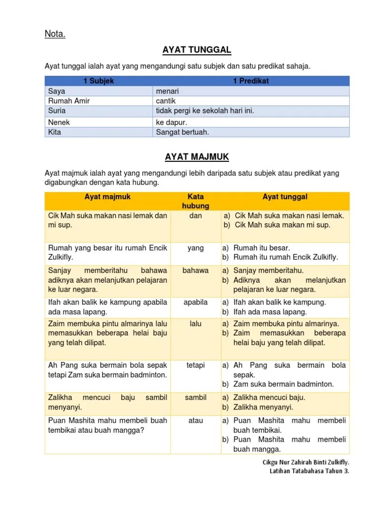 Contoh Ayat Kata Majmuk Tahun 3 - Latihan Ayat Tunggal Dan Ayat Majmuk Pdf